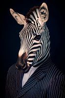Een fascinerend samenspel van elegantie en exotisme ontvouwt zich hier: een gestreept silhouet in een klassiek pak dat speels de grenzen tussen dier en mens doet vervagen. Deze opvallende compositie brengt een vleugje creativiteit en humor in elke woonkamer, ideaal voor gespreksonderwerpen en nieuwsgierige blikken.