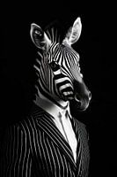 Een fascinerend samenspel van contrasten: een elegant pak ontmoet de humoristische flair van een gestreept zebramasker. Dit surrealistische beeld voegt een vleugje extravagantie en humor toe aan elke kamer. Het ziet er bijzonder goed uit in de woonkamer, waar het een gesprek kan stimuleren en gasten kan verbazen. Een echt uniek kunstwerk!
