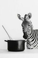Een speelse kijk op de keuken: een zebrapersoonlijkheid bij de kookplaat, nieuwsgierig turend in een zwarte pot. De contrastrijke strepen en minimalistische esthetiek geven elke kamer een levendige frisheid. Dit kunstwerk is perfect om een vleugje humor en creativiteit aan je keuken toe te voegen!