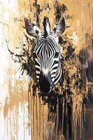 Dit prachtige kunstwerk combineert de schoonheid van een zebra met een gedurfde, abstracte achtergrond. De zwart-witte strepen van de zebra worden benadrukt door de artistieke toepassing van verfspetters en strepen in goud en beige tinten. De minimalistische en moderne uitstraling maakt het een perfecte aanvulling voor elk interieur. Of het nu in een kantoor, woonkamer of andere ruimte hangt, dit ontwerp trekt gegarandeerd de aandacht en voegt een gevoel van dynamiek en stijl toe. Het gebruik van monochrome kleuren, gecombineerd met de gouden accenten, creëert een spannend contrast dat de ogen blijft boeien.