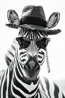 Zebra met hoed en zonnebril in zwart en wit van Poster Art Shop