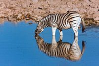 Koop de foto Zebra's bij de waterpoel in Namibië van Roland Brack op canvas, aluminium dibond, (ingelijste) fotoprint, behang en ArtFrame, op maat geprint in Fine-Art kwaliteit.