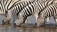 Een rij zebra's bij de waterpoel in Etosha National Park, Namibië.