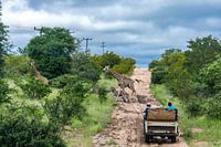 Het spotten van wilde dieren heeft iets magisch. Deze giraffen en zebra's liepen net voor een gamedrive jeep de weg over in Kruger National Park in Zuid-Afrika.