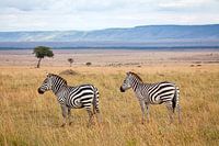 Twee zebra's in het typische landschap van de Masai Mara in Kenia.