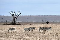 Een groep zebra's in het stofdroge Amboseli National Park in Kenia