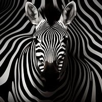 Zebraportret diep in een rij dunne zwarte lijnen op de achtergrond