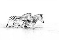 Zebras im Wasser schwarz-weiss van Robert Styppa