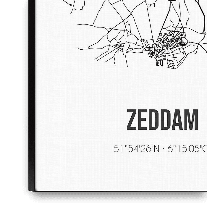 Koop dit abstracte kunstwerk Zeddam (Gelderland) | Landkaart | Zwart-wit van Stad & Wand op canvas, aluminium dibond, (ingelijste) fotoprint, behang en ArtFrame, op maat geprint in Fine-Art kwaliteit.