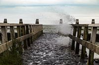 Een pad naar een zee dok wordt belaagd door wilde golven.