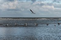 Op een bewolkte dag een wandeling langs de Noordzee, genieten van de stilte en de natuur, in Natuurgebied Kop van Goeree in Nederland.