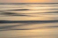 Zonsondergang en een zee in beweging. Tijdens deze opname is gebruik gemaakt van de techniek ICM (intentional camera movement).