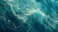 Een beeld van de zee van bovenaf, met een gouden randje.