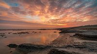 De 'kliffen' van de kust van Friesland in het noorden van Nederland tijdens zonsopgang.