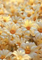 Een uitgestrekte zee van bleekgele madeliefjes wordt weergegeven, waarbij elk detail nauwkeurig is vastgelegd. Deze levendige afbeelding vangt het stralende licht van een zonnige dag, waardoor de madeliefjes op een bijna tastbare manier tot leven komen.