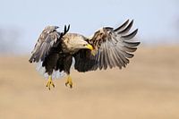 Zeearend ( Haliaeetus albicilla ), jachtvlucht, op zoek naar prooi, bijna frontaal zicht, indrukwekkend vleugelflapperen, wild, Europa.