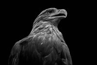 Close-up van een zeearend, uitgesneden op een zwarte achtergrond.