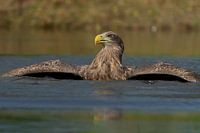 De zeearend is een imposante, zeer grote roofvogel ('vliegende deur') van waterrijke gebieden. Leeft van vis, watervogels en ook van aas, vooral als er ijs ligt. Lange tijd een zeldzame wintergast, maar tegenwoordig zelfs broedvogel in Nederland in toenemende aantal (2018: 14 paar). Trage, diepe vleugelslag, maar schroeft vaak in…