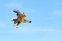 Zeearend (Haliaeetus albicilla) jagend naar vis boven een Fjord bij Vesteralen in Noord-Noorwegen.