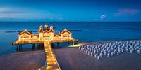 Pier in Sellin op het eiland Rügen op het blauwe uur.