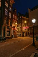 Boven de ingang van de St. Olofssteeg hangt lichtreclame voor de Zeedijk, het meest bekende straatje van de Amsterdamse Rosse Buurt.