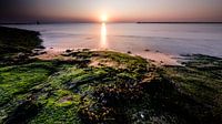 Zeegezicht vanaf de Brouwersdam bij zonsondergang. Opname gemaakt aan de zeezijde bij de haven en de trailerhelling.
