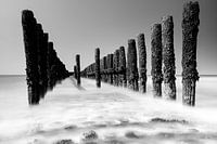 Zeegezicht vanaf het strand. Foto gemaakt aan de kust bij Westkapelle in Zeeland. Omgezet naar zwart-wit.