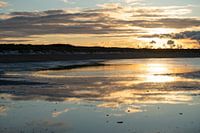 Mooie zonsondergang op de waddenzee, een spel van licht en donker water en lucht warm licht boven koud water