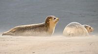 Bij de uitwatering van Katwijk aan Zee komen regelmatig zeehonden op bezoek an de rand van de stranden. Liggend op de grond met zandverstuiving maakte ik deze unieke foto.