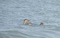 Zeehonden die net vrijgelaten zijn, nadat ze na een ziekte of verwonding verzorgt zijn, bij het strand in Renesse in Zeeland in Nederland. Vrijgelaten door zeehondenopvang A-Seal in Stellendam.