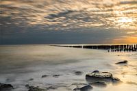 Ik vind het heerlijk om aan zee te zijn en te fotograferen met lange sluitertijden. Westkapelle is daarbij mijn favoriete plek. Ik was die dag eigenlijk net te laat om met terugtrekkend water te fotograferen. Mijn idee werd 'verpest' doordat het vloed werd. Maar toch werd mijn oog naar deze plek getrokken. De zon ging onder en vanaf de…