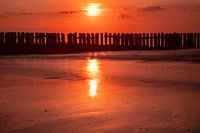 Een zonsondergang aan de kust bij het Zeeuwse plaatsje Westkapelle. Westkapelle ligt op het eiland Walcheren en is een druk bezochte badplaats. Zeeland is een geliefde vakantieplek voor Duitsers en Belgen.