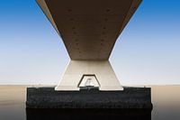 Een abstract doorkijkje onder de Zeelandbrug gezien vanaf de zuidkant richting Zierikzee. Uitgevoerd in duotone met twee contrasterende kleuren wat past bij een modern interieur.