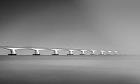 landschapfoto lange sluitertijd van de Zeelandbrug in de mist