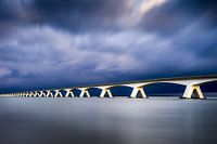 Hier een opname van de Zeelandbrug tijdens zonsondergang na wat flinke buien. Deze zijn nog mooi te zien op de achtergrond