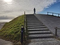 Bronzen zeeliedendocument in West-Terschelling staat voor een zzemansvrouw die over de zee tuurt.in afwachting van een man of zoon die op zee is.