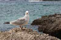 Tijdens een lange hike langs de westkust van Menorca namen wij een welverdiende pauze. Deze zeemeeuw was erg geïnteresseerd in wat wij op dat moment te eten hadden. Het levert een mooi beeld op van de zeemeeuw in zijn ruige omgeving, die onbeschaamd contact maakt door je recht aan te kijken.