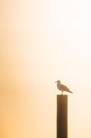 Een zeemeeuw rust uit op de golfbreker, in zomers licht aan de Zeeuwse kust.
