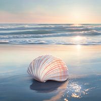 Aan de zachte kust, waar de zee de zon kust, ligt een glinsterende schelp, waarvan de delicate kleuren oplichten in het zonlicht. De golven fluisteren verhalen van de oceaan, terwijl het fijne zand ze zachtjes omarmt. Een perfect moment, vastgelegd tussen het strand en de horizon, dat de magie van het moment overbrengt.