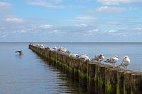 Zeemeeuwen op een krib op het strand van Kölpinsee (Usedom) van t.ART