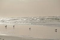 Koop dit vogel kunstwerk Zeemeeuwen op het strand van Clicksby JB op canvas, aluminium dibond, (ingelijste) fotoprint, behang en ArtFrame, op maat geprint in Fine-Art kwaliteit.