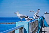 Koop de foto Zeemeeuwen op relingen van C. Nass als print op canvas, aluminium dibond, (ingelijste) fotoprint, behang en ArtFrame. Voor jou op maat geprint in Fine-Art kwaliteit.