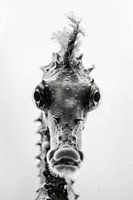 Deze zwart-wit foto legt de delicate schoonheid van een zeepaardje vast in indrukwekkend detail. Het zeepaardje, met zijn delicate contouren en artistieke vormen, staat centraal in dit minimalistische kunstwerk. Het monochrome palet benadrukt de elegantie en magie van het zeeleven, ideaal voor liefhebbers van maritieme decoratie en artistieke natuurfotografie.