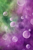 Zachte, glinsterende bubbels zweven in een mystiek spel van paarse en groene kleuren. Deze dromerige compositie straalt een rustgevende sfeer uit en nodigt uit om te blijven hangen. Ideaal voor de slaapkamer om een ontspannen oase te creëren of voor de woonkamer om een gesprek te inspireren in een artistieke sfeer.