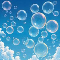 In dit kunstwerk heb ik de vluchtigheid en het etherische van zwevende zeepbellen vastgelegd tegen een heldere, blauwe lucht. De transparantie van de bellen en hun zachte reflecties van licht en kleur creëren een serene en dromerige sfeer. De compositie is een spel van grootte en plaatsing, waarbij de bellen lijken te dansen en zweven, alsof ze op het punt staan te verdwijnen in de oneindigheid van de hemel.