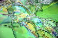 Een kleurig bellenpatroon in een bak met zeepsop.