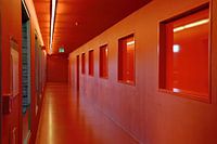 Een van de vele oranje gangen van het Nederlands Instituut voor Beeld en Geluid in Hilversum. Ik'ben er vrij zeker van dat de mensen die hier werken hieraan moesten wennen.