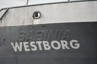 De schepen veranderen van namen. De oude naam is nog te zien. De opgelaste letters overschilderd in grijze verf. De nieuwe naam er recht onder in witte verf. De boeg heeft al wat doorstaan en kan een opknap beurt gebruiken. De zwarte strepen over de verf van de boeg geeft de foto een rauwer beeld van het schip in de haven. Op een sombere winterse dag zag ik dit stukje kunst voor aan de muur.
