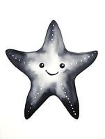 'Zeester voor kinderkamer' is een tekening van een zeester met kleine witte stipjes die mooi zou staan in een baby of kinderkamer. Er is gebruik gemaakt van zwart wit waterverf,