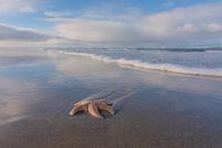 Soms spoelen ze met duizenden tegelijk aan op het Noordzee strand van Terschelling, de gewone zeester. Deze had een doorsnede van ongeveer 10 CM.